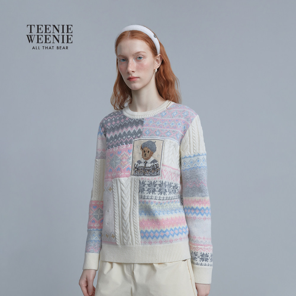 TeenieWeenie小熊女装毛针织衫25冬新款活力休闲多彩提花圆领毛衣