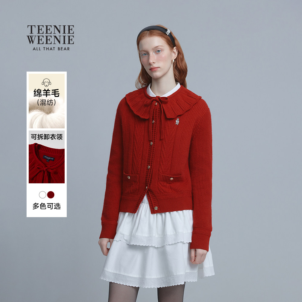 TeenieWeenie小熊女装毛针织衫25冬新款少女感可拆卸翻领毛衣开衫