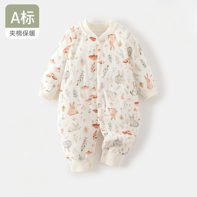 婴儿连体衣春秋冬季a类夹棉新生儿保暖衣婴儿衣服爬服宝宝薄棉衣