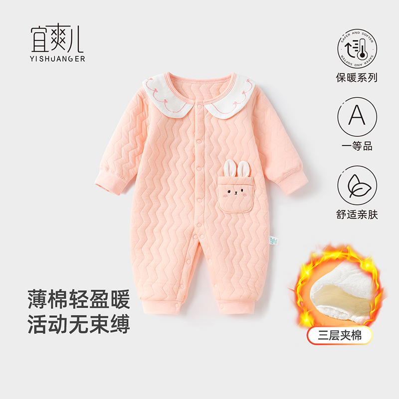 婴儿夹棉连体衣秋冬季40g薄棉新生儿保暖衣服外出服哈衣宝宝爬服
