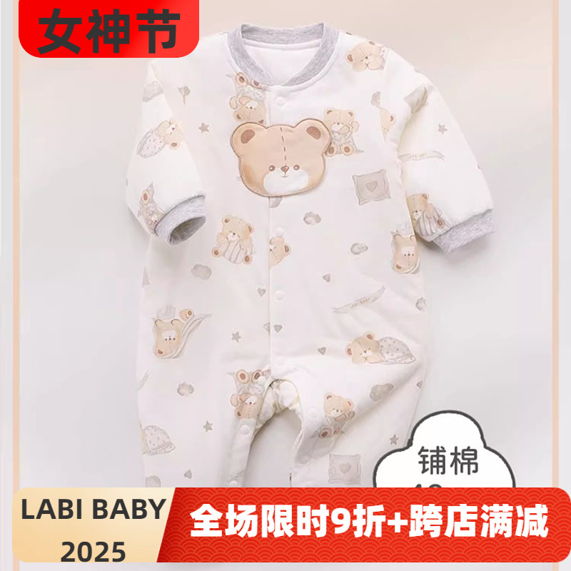 商场同款拉比婴儿哈衣2024春秋夹薄棉全开连体衣新生儿保暖衣爬服