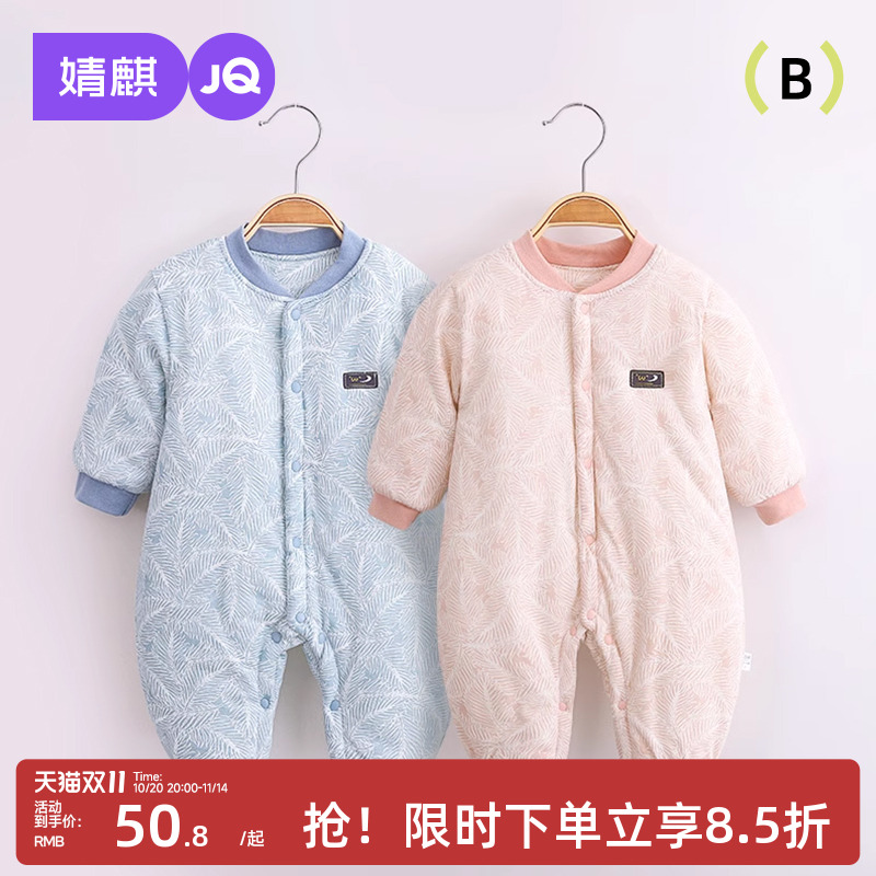 婧麒婴儿衣服秋冬夹棉保暖棉衣新生儿哈衣纯棉连体衣宝宝加厚冬装