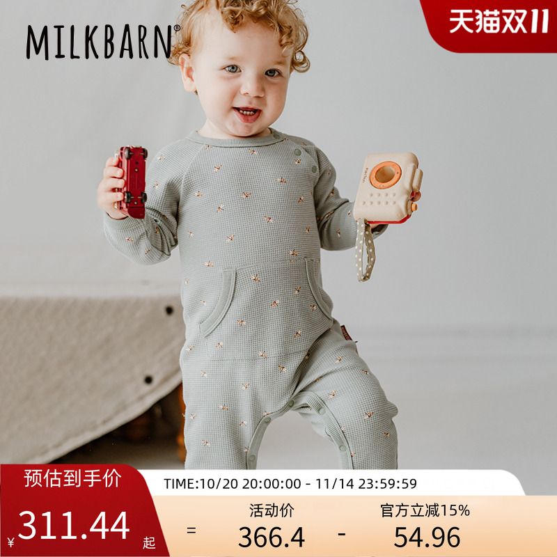 Milkbarn婴儿秋季连体服新生儿保暖衣服宝宝套头哈衣爬服