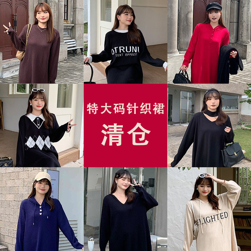 特大码220斤胖妹妹毛织连衣裙秋冬中长款宽松针织裙胖mm 清仓捡漏