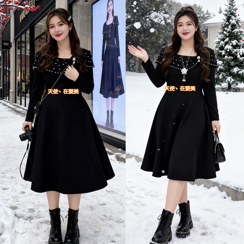 2025年新款连衣裙胖妹妹秋冬季长袖高级感大码女装漂亮独特收腰型