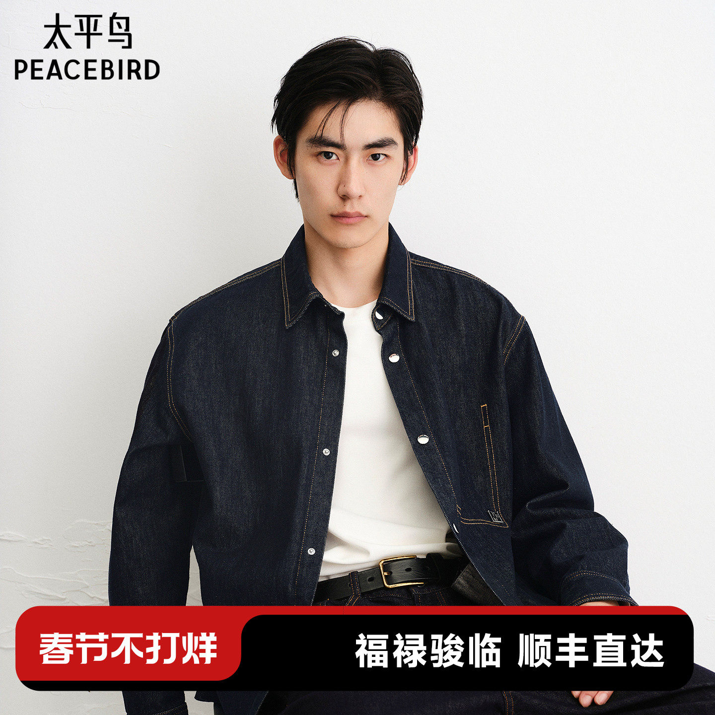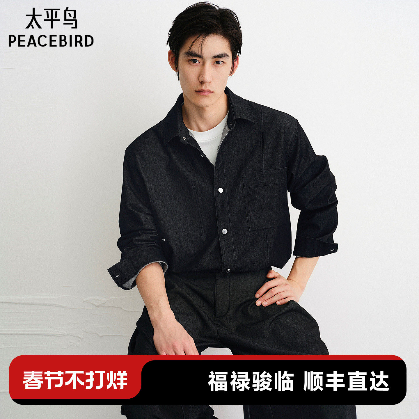太平鸟男装 休闲衬衫2025秋季新款丝光牛仔衬衫阔版时尚男士衬衫