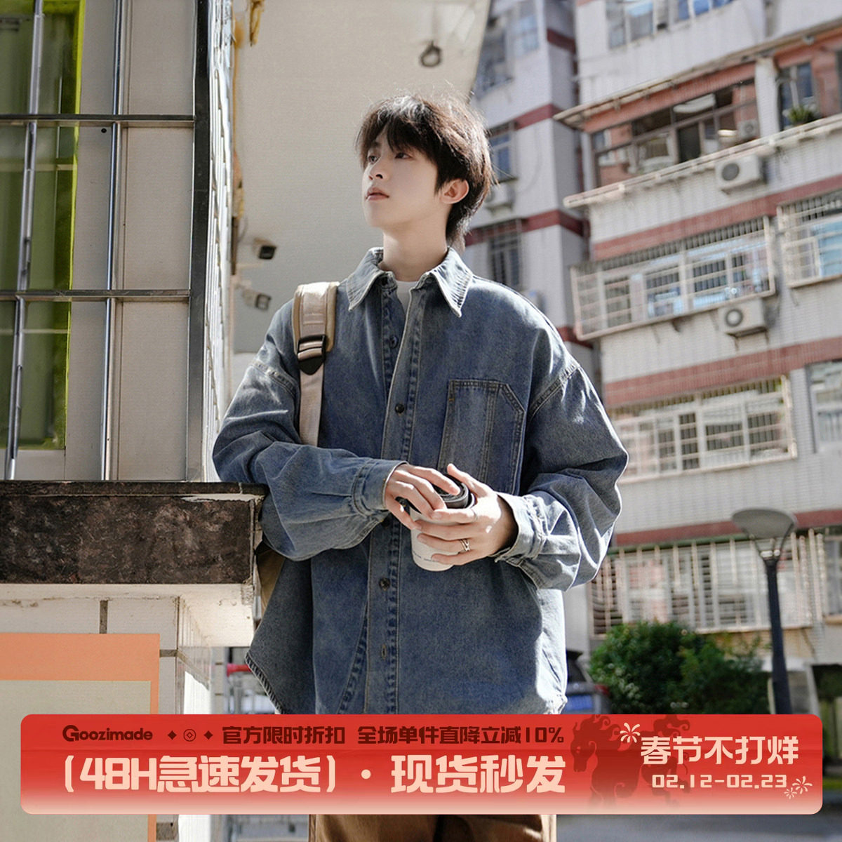 【经典丹宁】酵素洗纯棉牛仔衬衫柔软美式复古宽松长袖休闲外套男