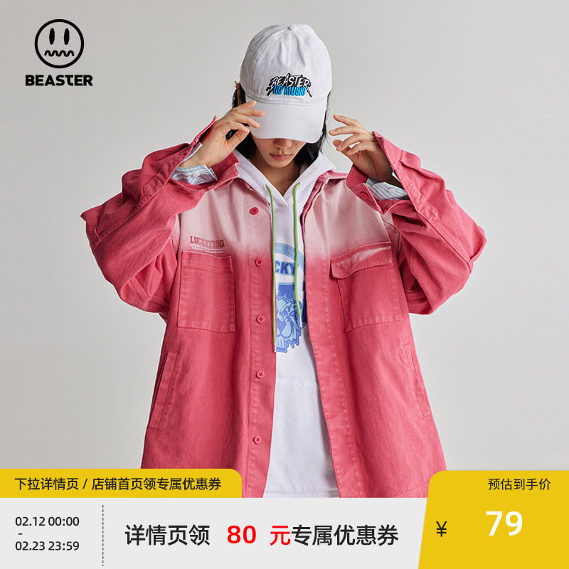 悟空有货日系复古做旧长袖牛仔衬衫男潮牌宽松bf风休闲情侣薄外套