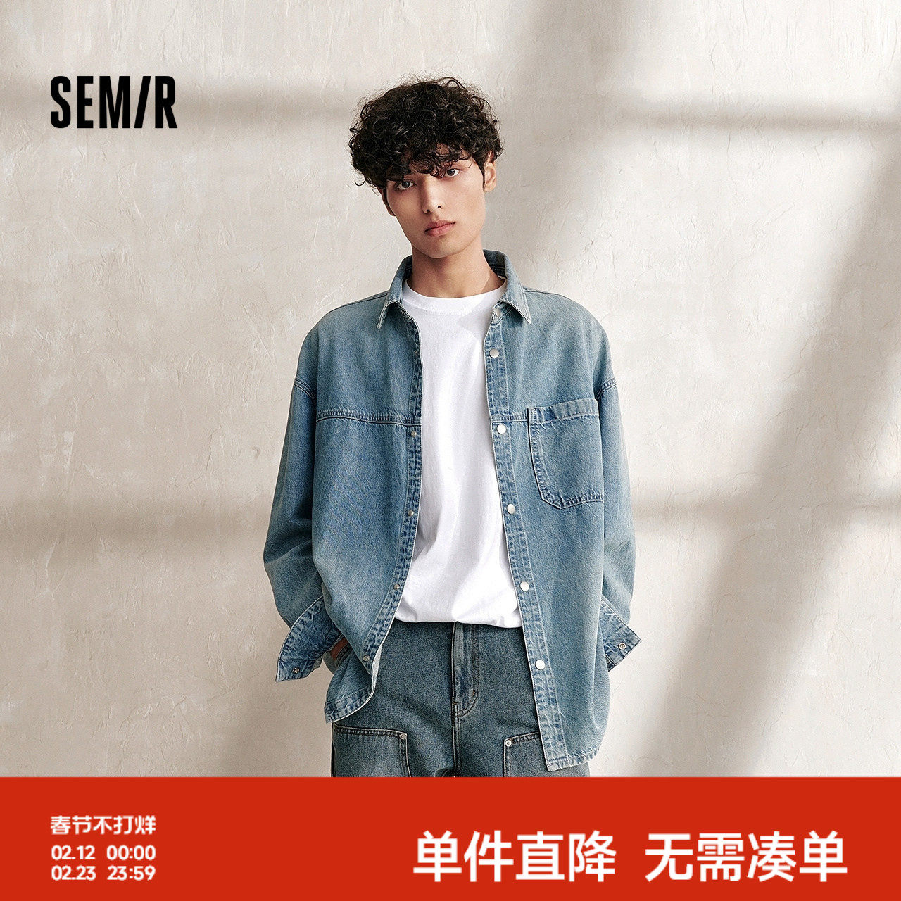 森柔牛仔|森马长袖衬衫男2025秋款宽松休闲上衣复古水洗牛仔外套