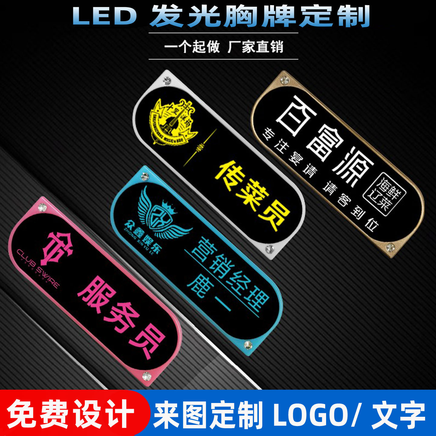 LED胸牌定制电子发光工牌高档KTV酒吧工号牌代驾灯牌服务员工作牌
