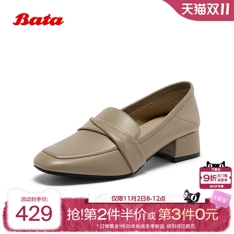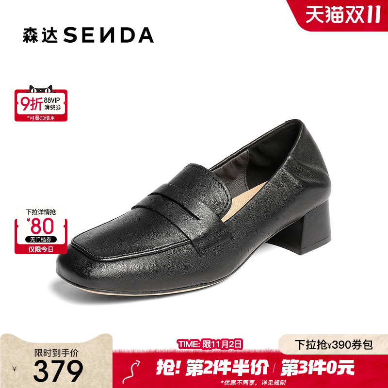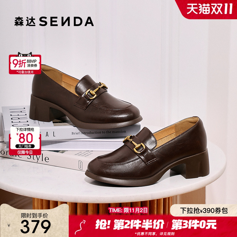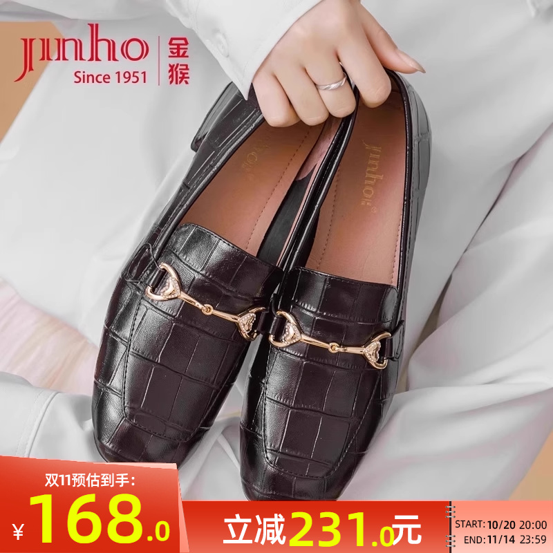 - 欧美新款女鞋学院风真皮平底平跟乐福鞋小皮鞋春秋英伦风中跟单鞋