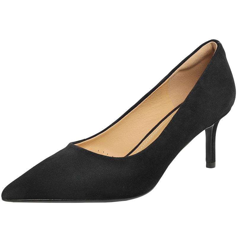 2025年新款百搭尖头工作单鞋黑色高跟鞋女细跟绒面气质职业女鞋子