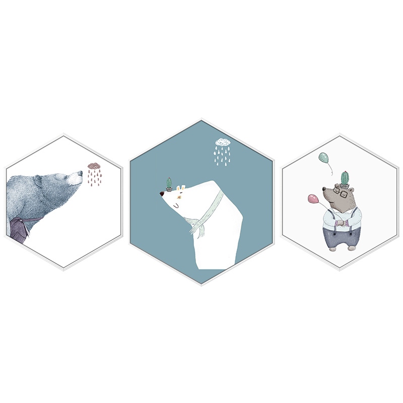 卧室儿童房装饰画男孩女孩北欧挂画可爱卡通熊壁画床头六边形定做
