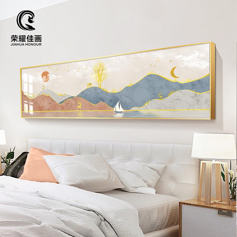 卧室床头装饰画现代简约客厅沙发背景墙横幅壁画轻奢抽象北欧挂画