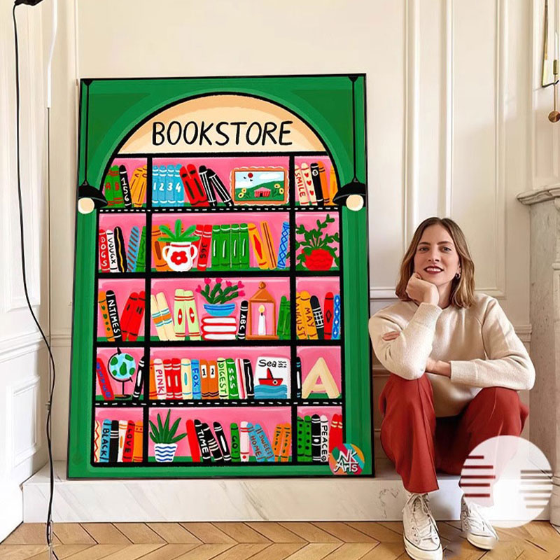 现代简约多巴胺小众艺术客厅装饰画书架玄关画2025年新款北欧挂画