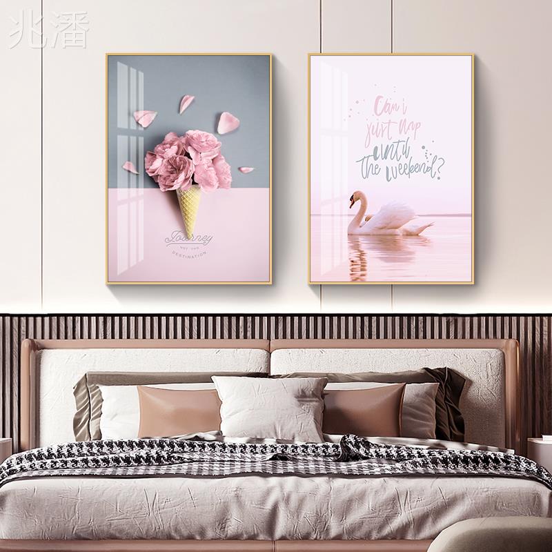卧室床头装饰画 画主卧温馨壁画 画房间背景墙两联北欧挂画 画客