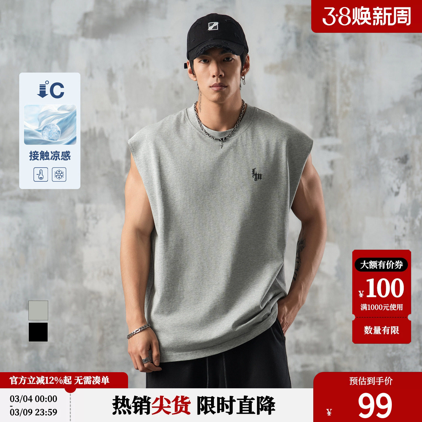 鹿家门宽松大码休闲宽肩纯棉凉感背心男夏季健身百搭运动无袖T恤