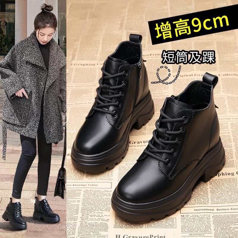 马丁靴女厚底内增高秋冬季加绒坡跟小个子靴子显脚小显瘦短靴女鞋