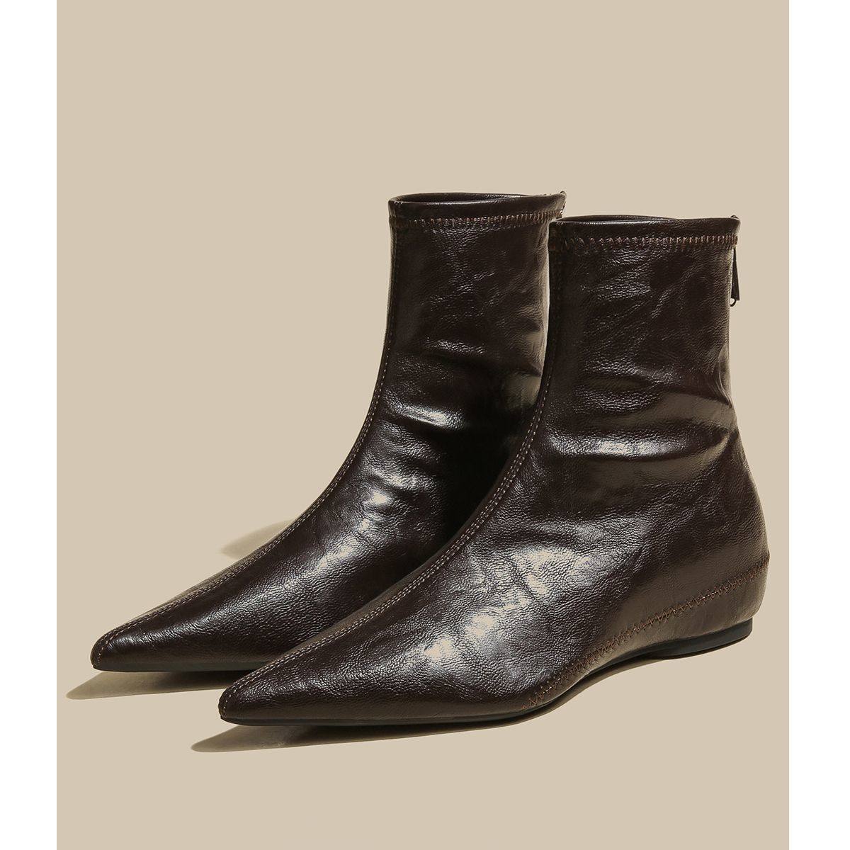 - 真皮低跟女靴