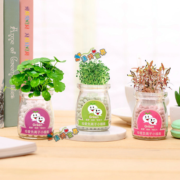 室内迷你负离子小盆栽绿植物带种子小草桌面水培学生毕业奖品礼物