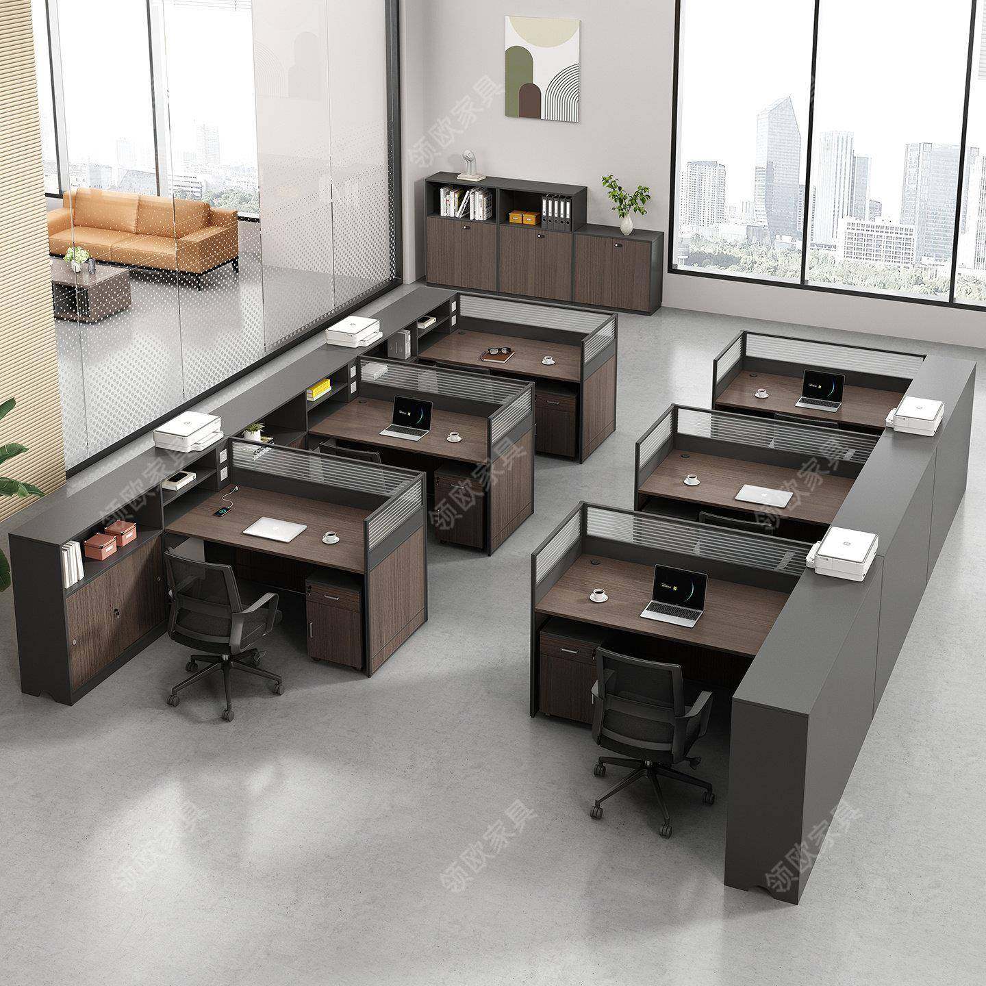 屏风办公桌工作位卡座职员桌员工桌四六人位办公桌椅组合办公家具