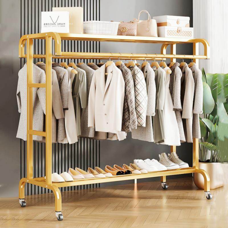 奶油风服装店展示架落地晾挂衣架酒店阳台衣帽架加粗宿舍凉晒带轮