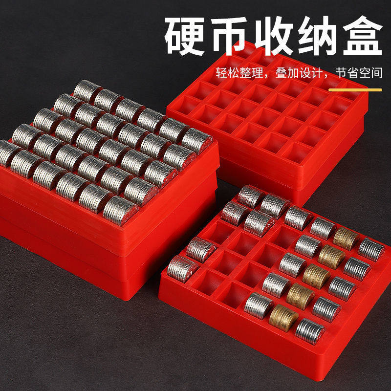 硬币收纳盒一元游戏币零钱装硬币的盒子现金零花钱一块钱五毛一角混装分类清点盒点币盒钞票卡片货币存钱盒