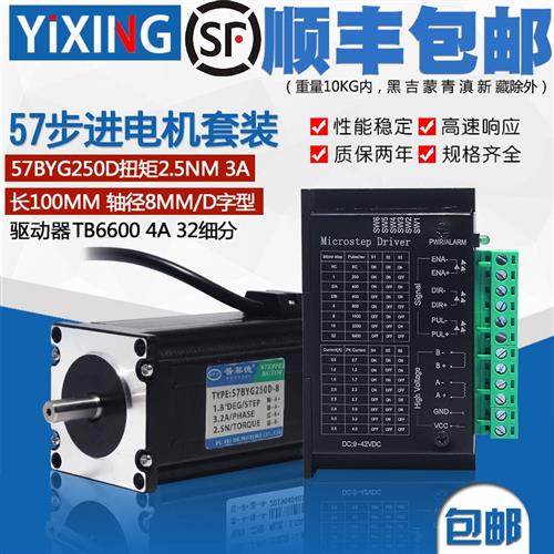57步进电机套装 长100MM 驱动器4A+57BYG250D 扭矩2.5n.m 32细分