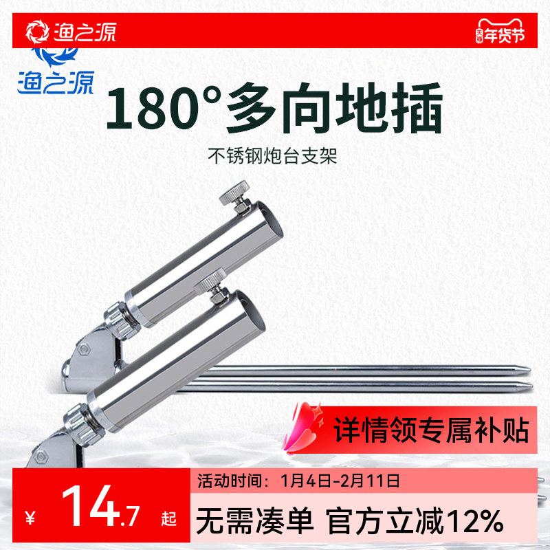 渔之源鱼竿支架地插鱼竿架杆插地钓鱼竿支架垂钓用品不锈钢双炮台