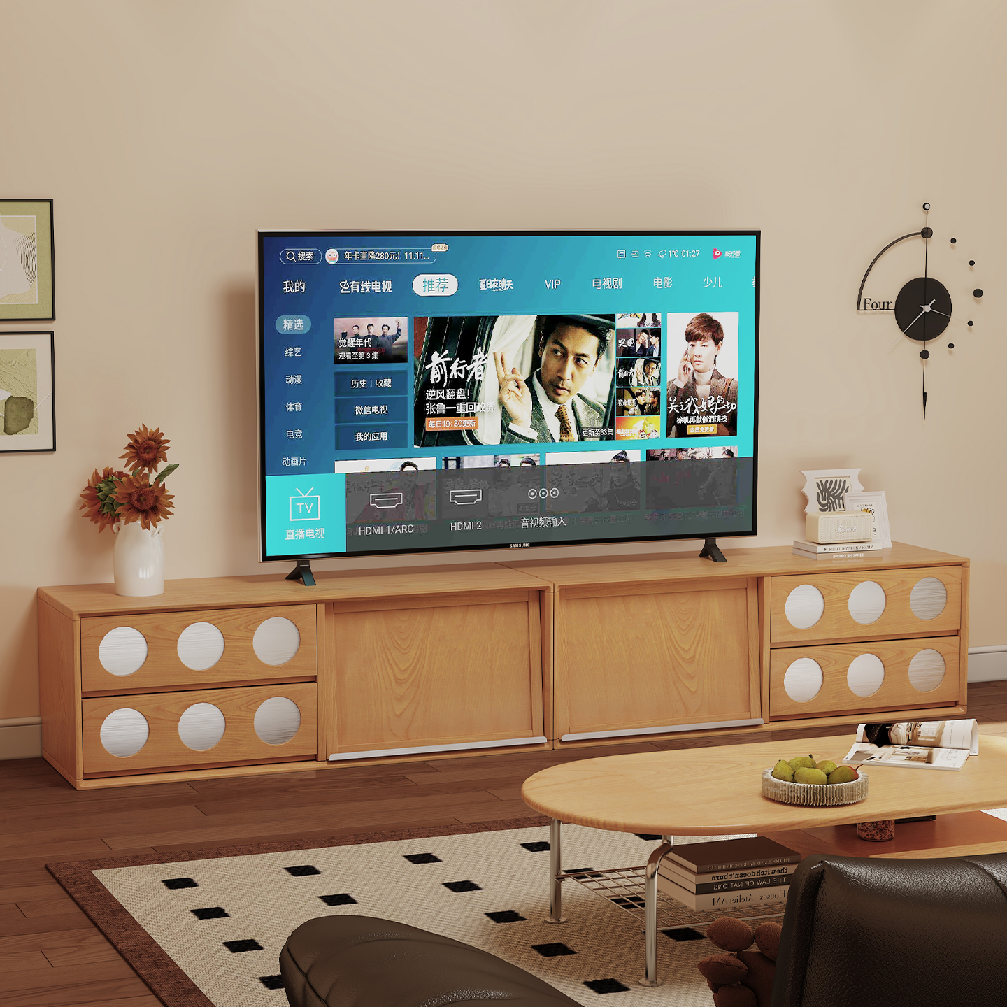 原木奶油风2024新款电视机柜茶几组合圆角客厅落地小户型现代简约