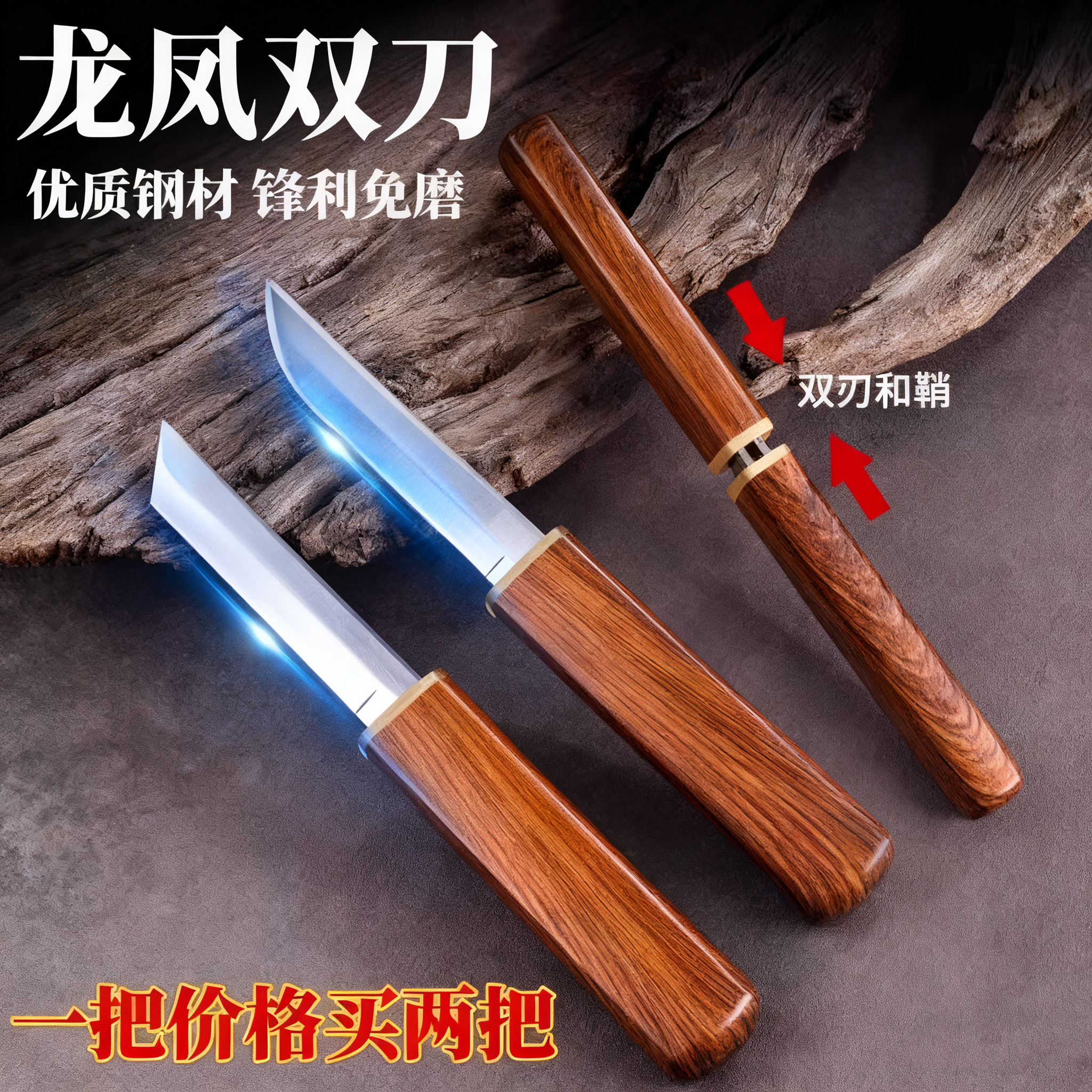 龙凤子母鸳鸯双刀家用多功能水果刀户外小刀锋利高硬度随身吃肉刀