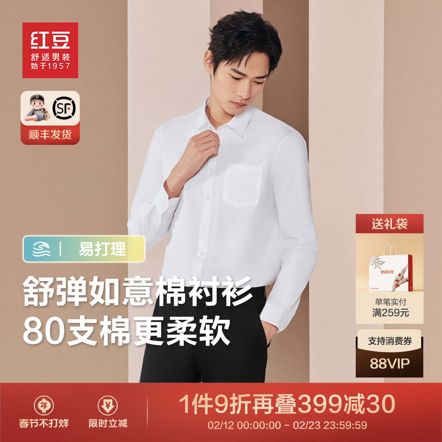 红豆白衬衫男长袖弹力80支长绒棉免烫男士通勤正装商务结婚衬衣