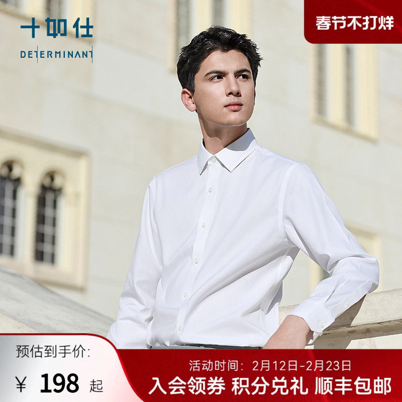 十如仕2026秋冬纯棉商务长袖白衬衫男基础免烫衬衣新郎伴郎衫201