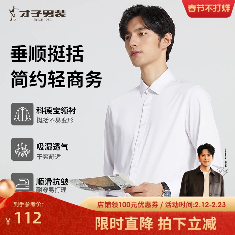 【抗菌竹纤维】才子男装商务长袖白衬衫男秋新款正装打底修身衬衣
