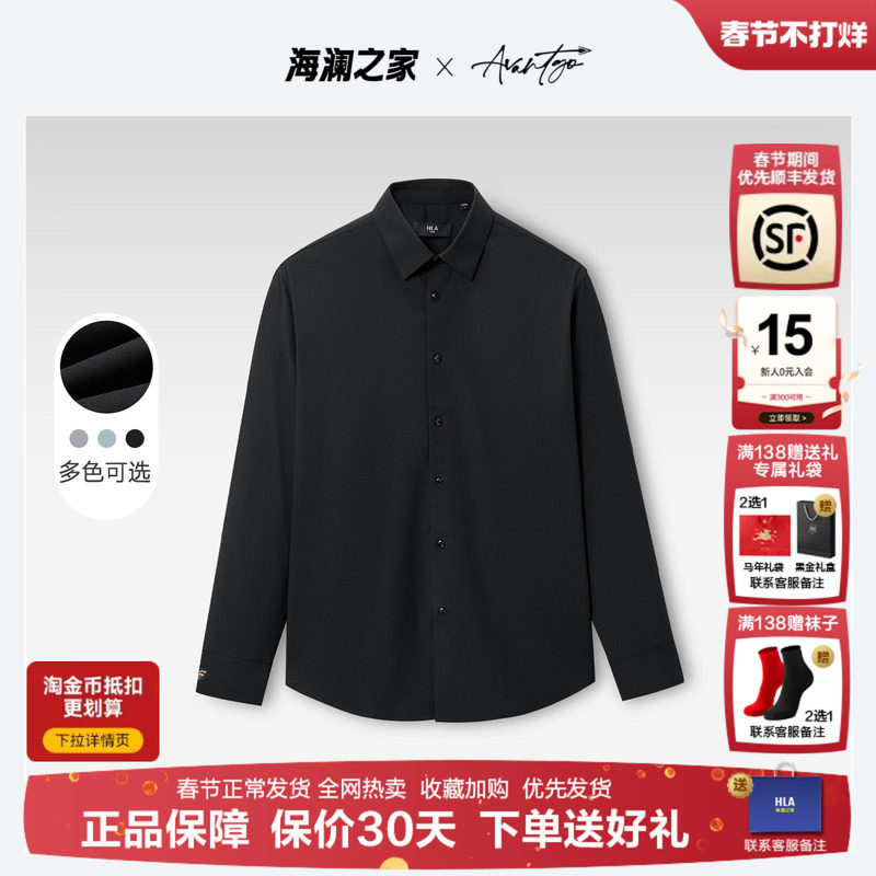 HLA/海澜之家长袖白衬衫男士免烫夏季衬衣简约商务黑色工装寸衫男