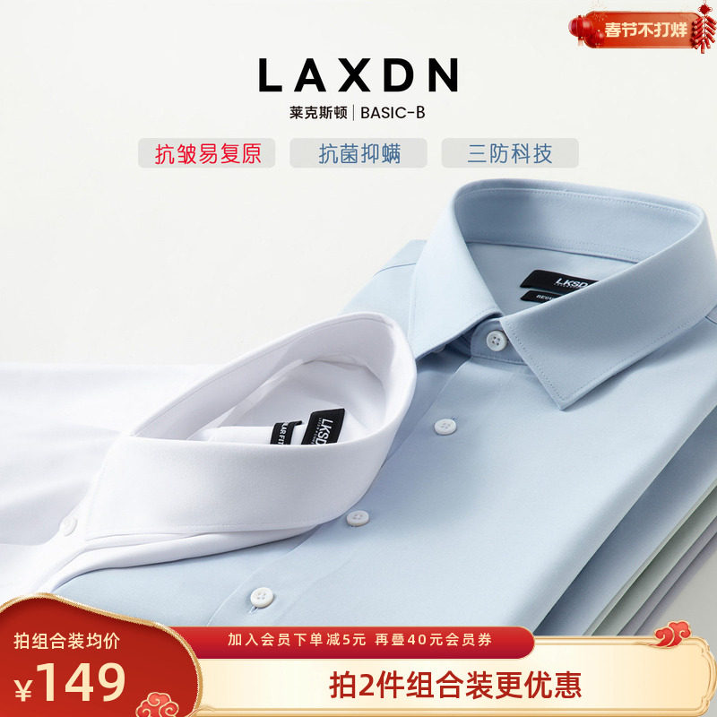 [抗皱易打理]莱克斯顿免烫纯色长袖白衬衫男春秋商务正装职业衬衣