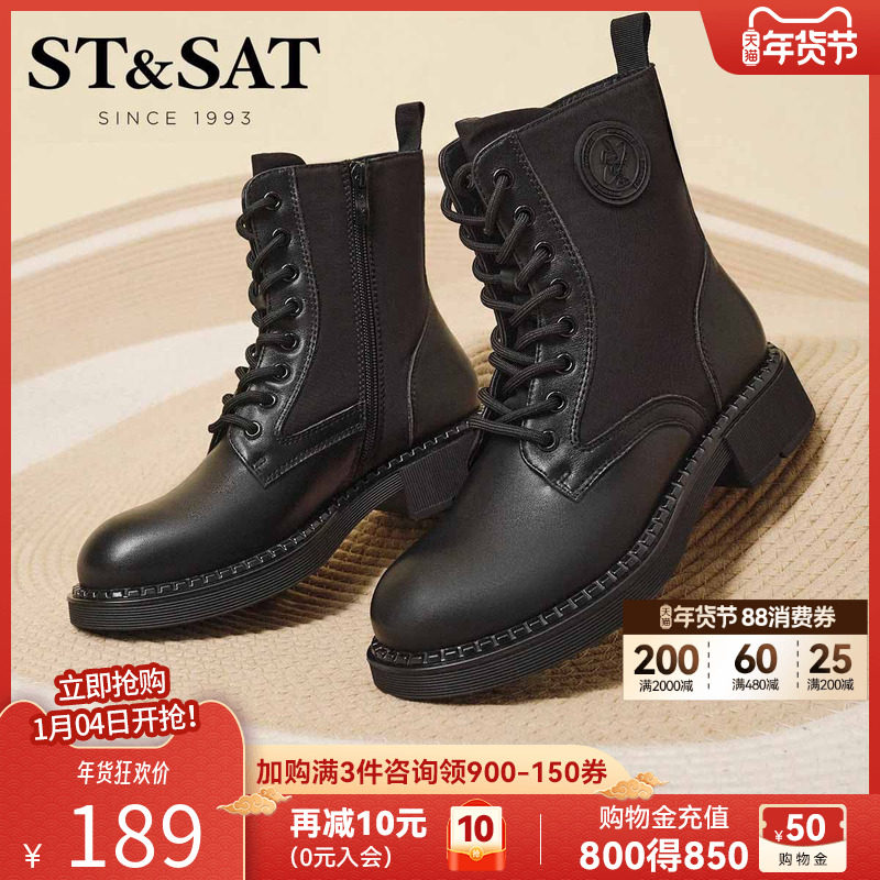 星期六马丁靴秋冬新款系带厚底英伦风白色短靴真皮女靴SS24116379