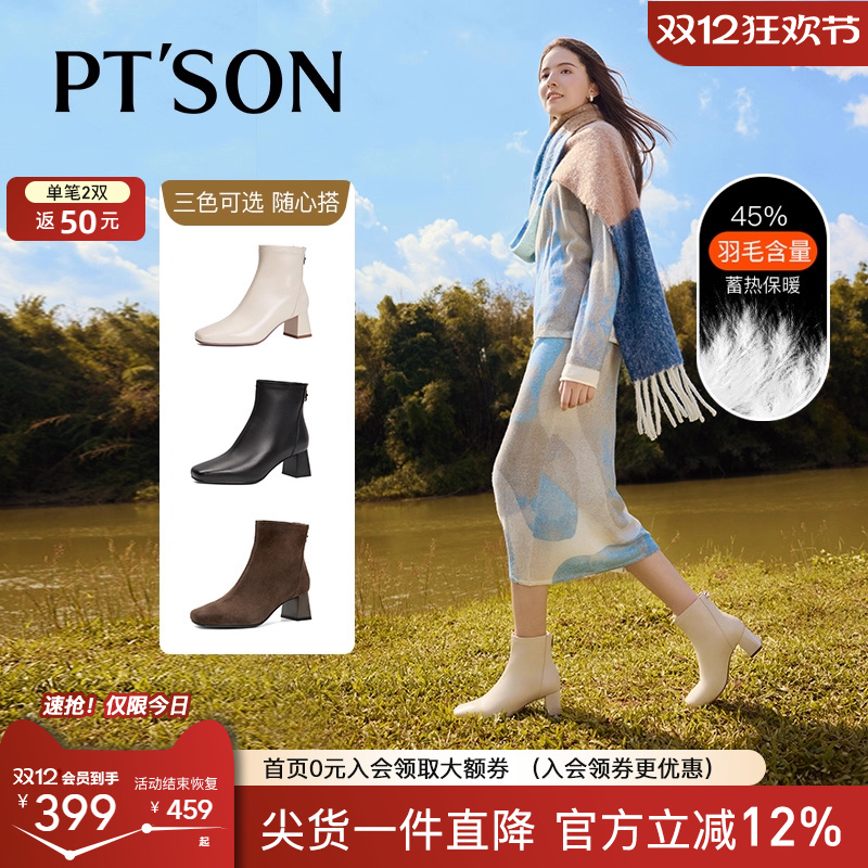- 方头粗跟短靴