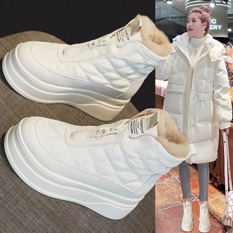白色厚底雪地靴女2025新款真皮加绒加厚毛毛棉鞋冬季增高显瘦短靴