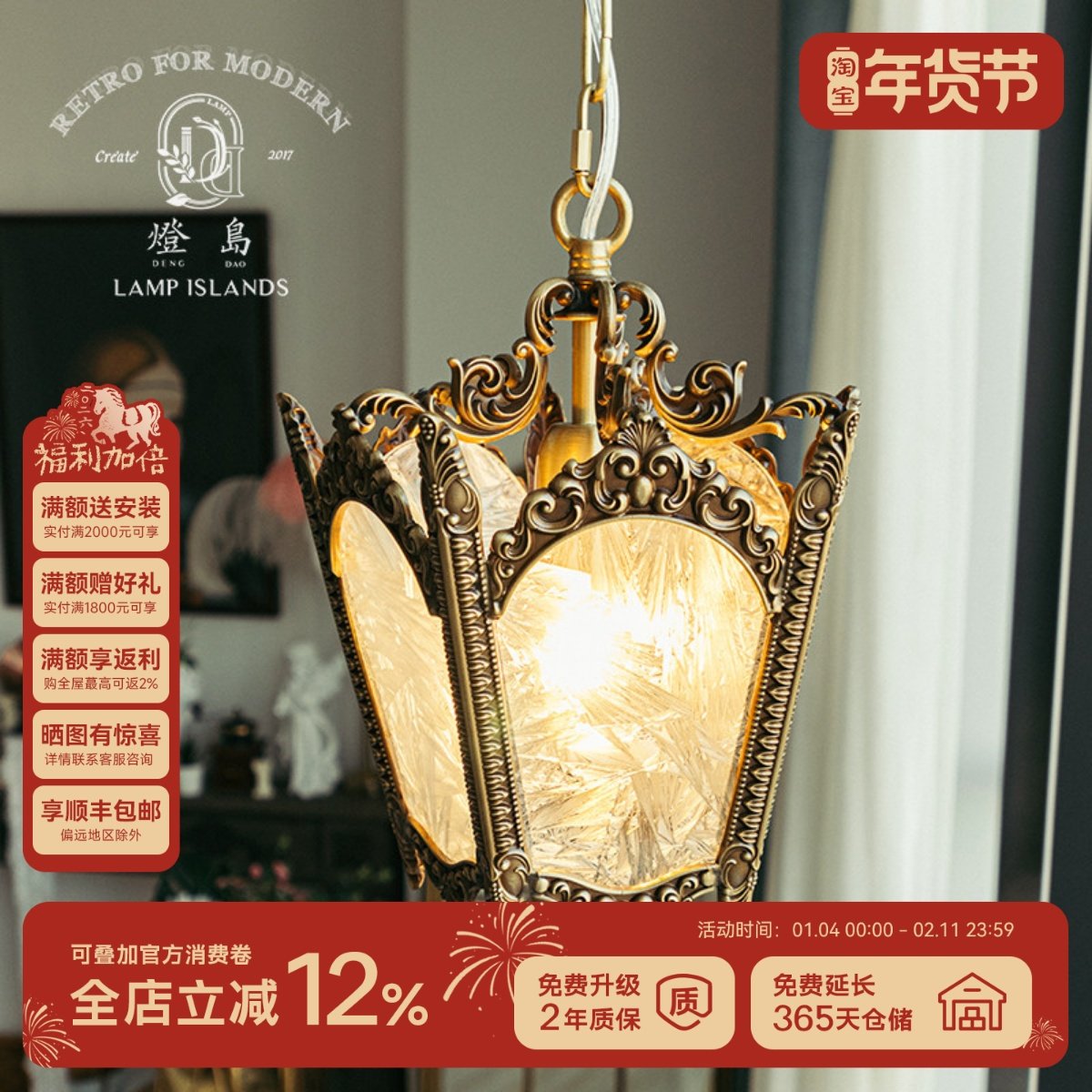 灯岛 北欧复古西洋古董全铜冰花吊灯法式吧台床头玄关过道餐厅灯