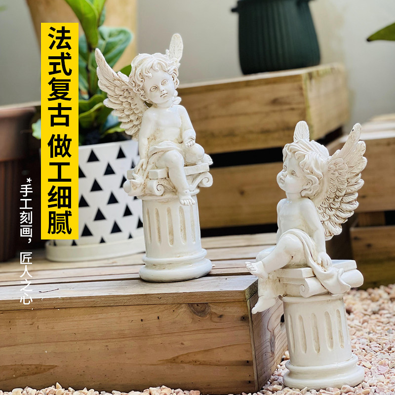 法式复古罗马柱小天使摆件西洋古董风家居客厅酒柜橱窗装饰工艺品