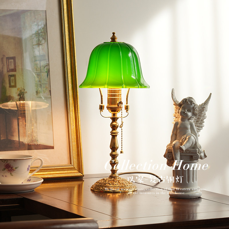 以家 老上海复古黄铜台灯 西洋古董翡翠绿中古卧室床头美式装饰灯