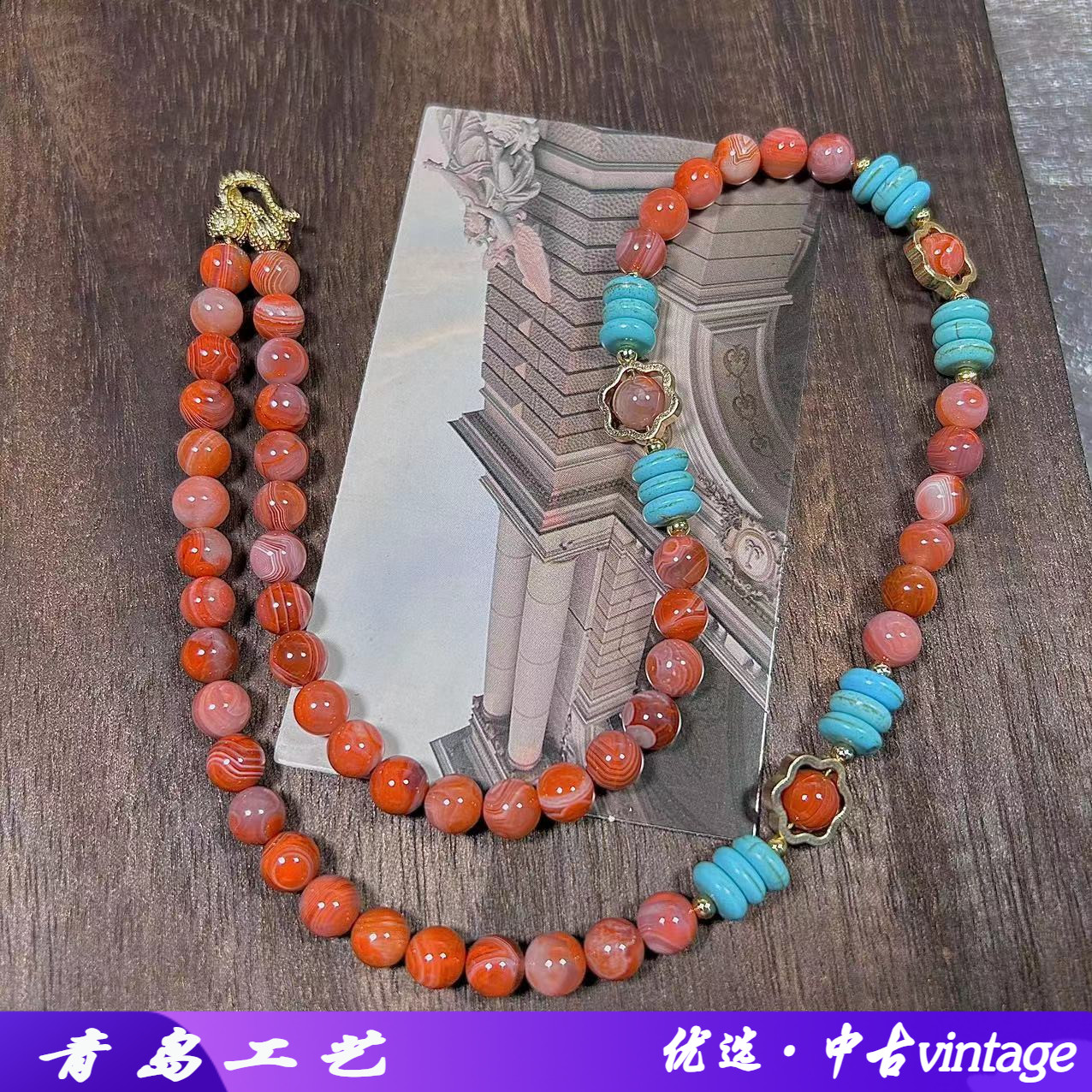 中古vintage西洋古董南红玛瑙项链复古天然红玛瑙新中式国风项链