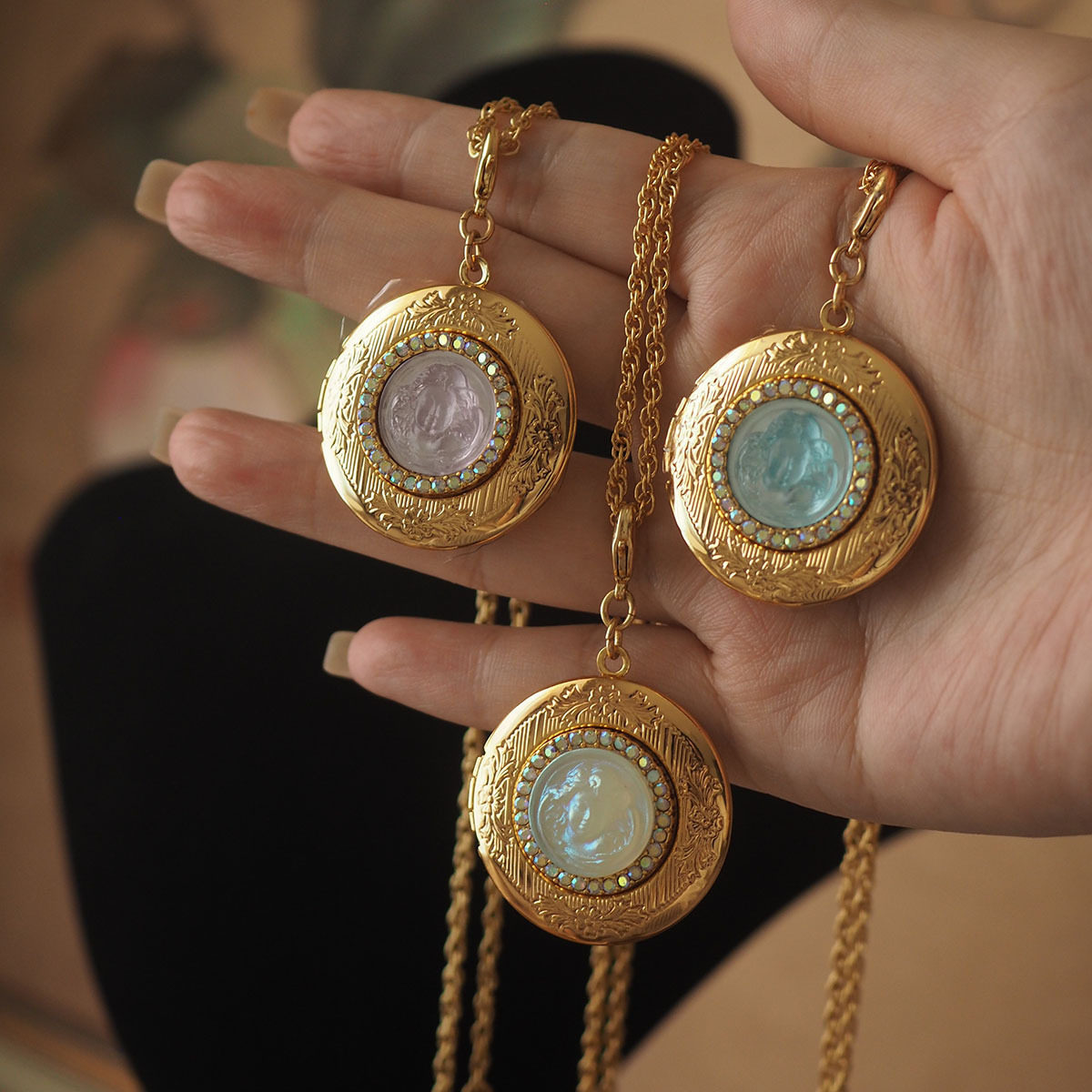 原创设计vintage复古相片盒子吊坠项链镀金工艺西洋古董毛衣链女