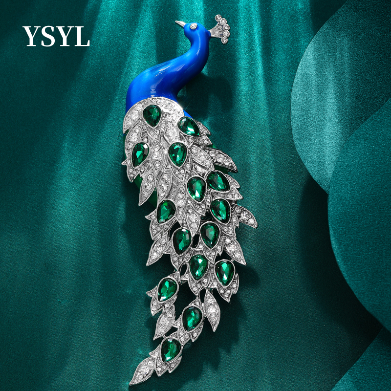 雅仕雅乐中古珐琅滴釉宝石镶嵌镶钻复刻欧洲西洋古董孔雀胸针胸花