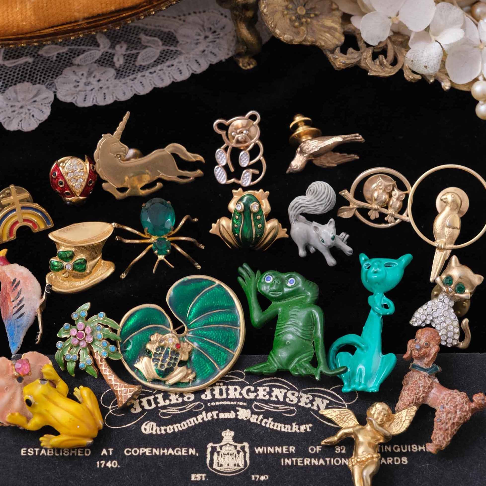 Vintage西洋古董首饰跳蚤市场趣味彩釉小熊动物孤品徽章胸针别针