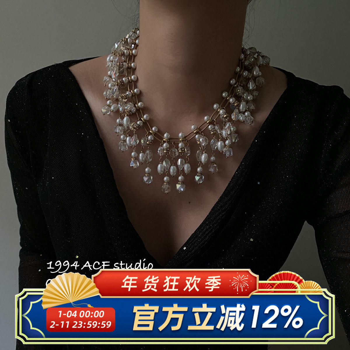 柴夫工作室/X657 西洋古董优雅珍珠琉璃耳钉宫廷贵气流苏毛衣项链