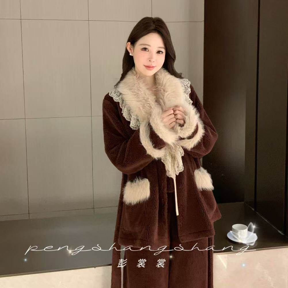 - 冬季加厚珊瑚绒睡衣女套装家居服