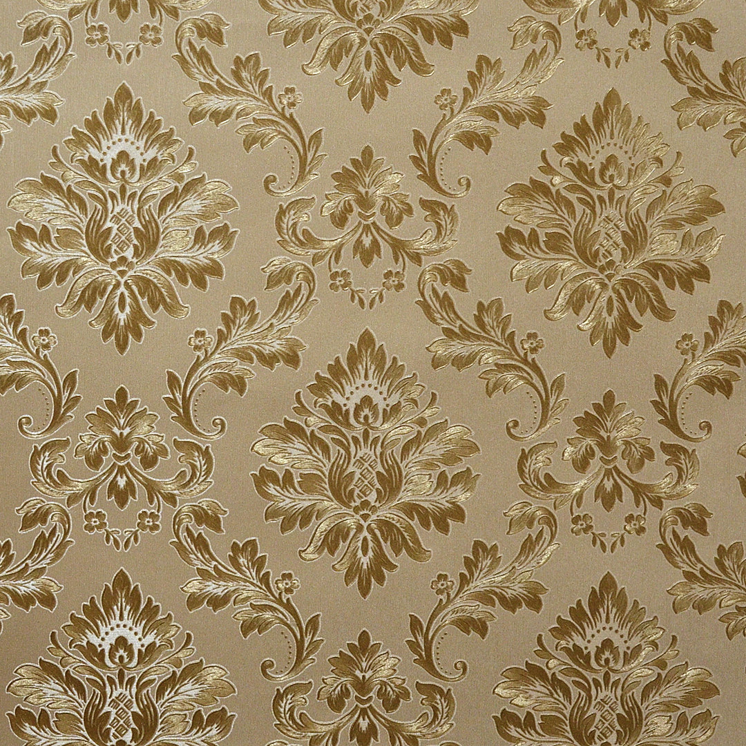 欧式大马士革PVC深压纹墙纸防水可擦加厚立体浮雕客厅背景墙壁纸