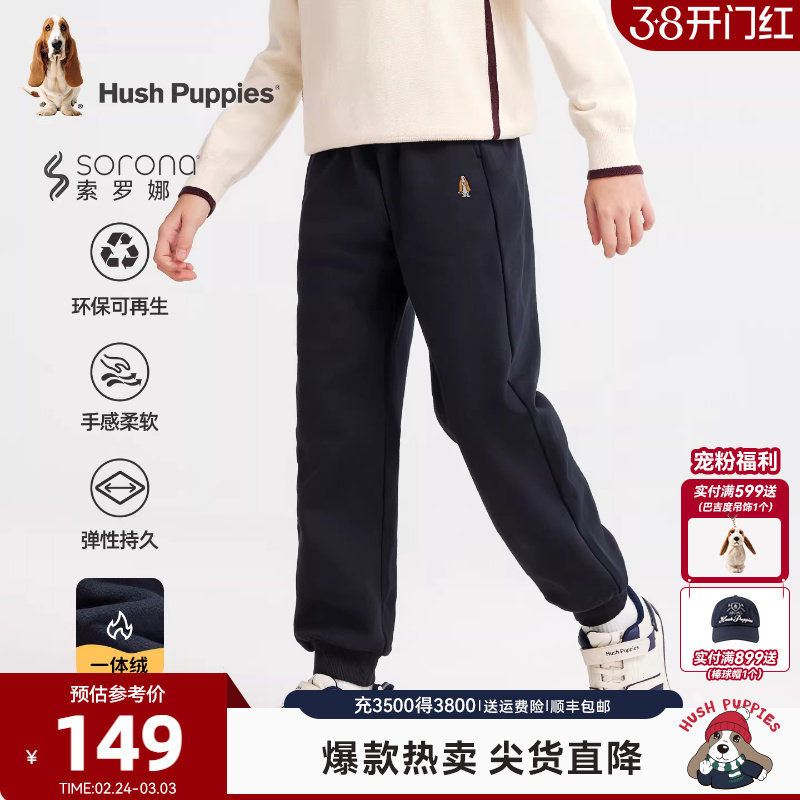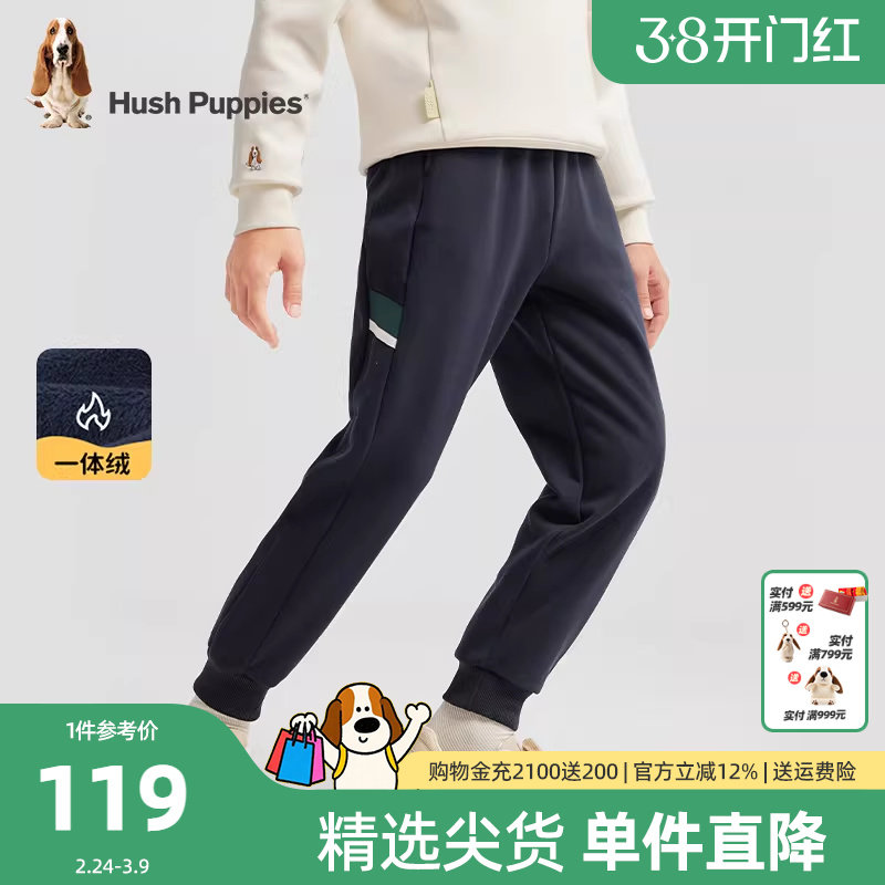 暇步士童装男童加绒运动裤25冬新品大童休闲裤保暖儿童一体绒长裤
